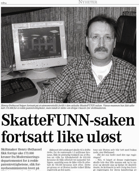 - Dette dreier seg om Statens troverdighet! Saken viser at ingen lenger må regne med at statlige støttemidler er reelle, selv etter at de er utbetalt. SkatteFunn -saken viser at om ett departement utbetaler deg støtte, og alt tilsynelatende virker helt i orden, kan et annet departement plutselig finne ut at de vil forlange pengene tilbake lenge etter at du har brukt pengene. Dette kan ikke et samfunn leve med, sier Østhassel.